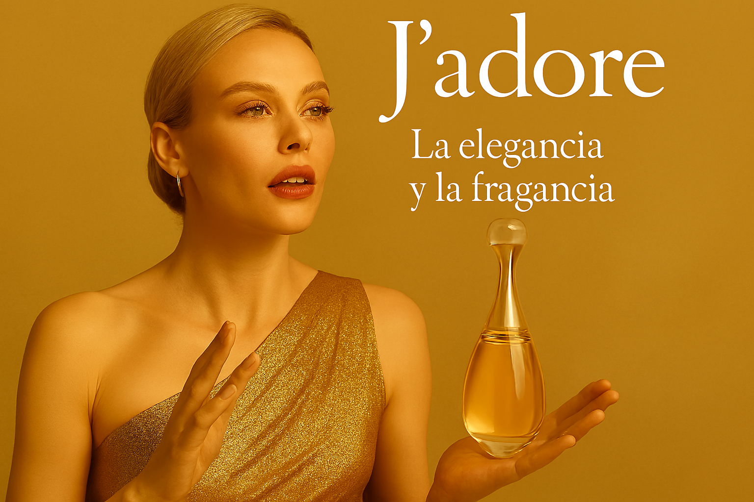 Descubre J'adore, la pureza dorada de la feminidad. Un perfume exquisito que combina la intensidad seductora del jazmín grandiflorum, la frescura luminosa del flor de naranjo y la exuberancia de la rosa centifolia. Su fragancia voluptuosa y su botella en forma de oro líquido, con un tapón en metal y cristal, convierten cada nota en un tesoro sensorial. La expresión definitiva del lujo floral, diseñada para durar y envolverte en su cálida, irresistible belleza.