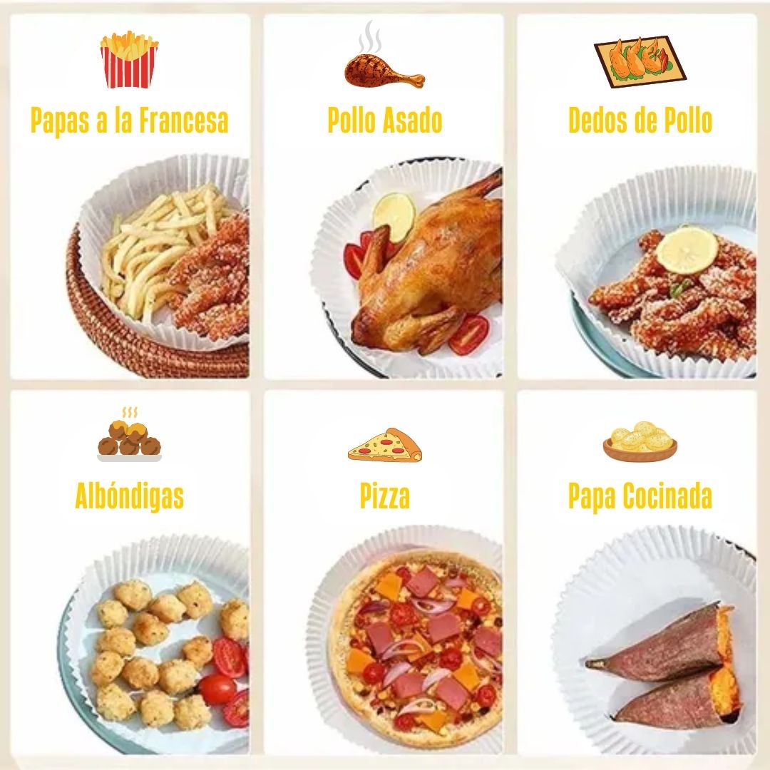 Aptos para todo tipo de modelos. Colócalos fácilmente en cualquier tipo de freidora de aire. El borde elevado de 4,5 centímetros te permitirá adaptarlos a cualquier base de freidora y evitarán que la comida se pegue en las paredes.