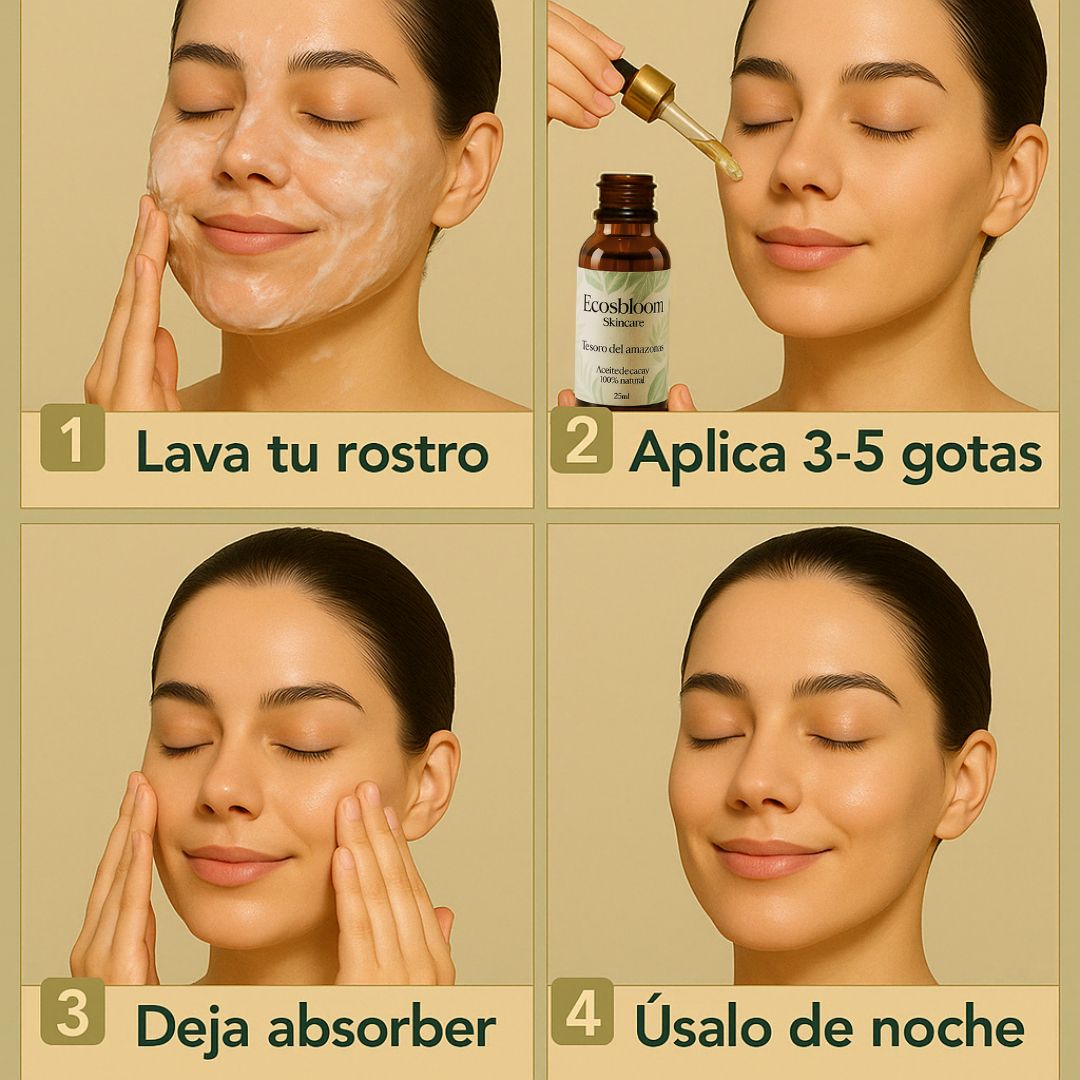 • 💧 Mañana: Aplica 3-4 gotas sobre el rostro limpio, antes del protector solar.